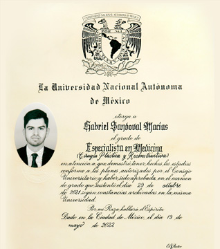 Certification endorsed by UNAM, completed at Dr. Rubén Leñero General Hospital